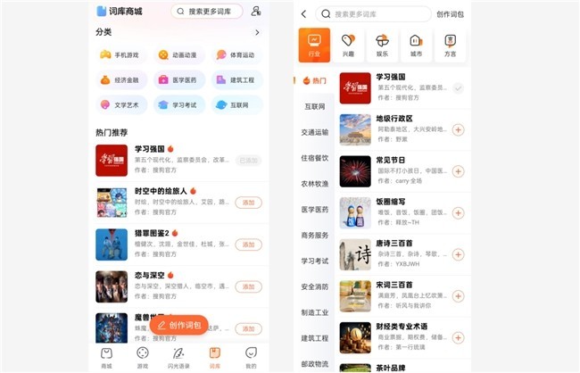 词库覆盖热门推荐、兴趣、方言和专业领域等各方面,涉及互联网、文学、经济等28个行业词库分类,并推出专业领域的定制服务(医生服务和律师服务),支持医生快速输入病例术语、律师调用法律条文,精准匹配专业场景。