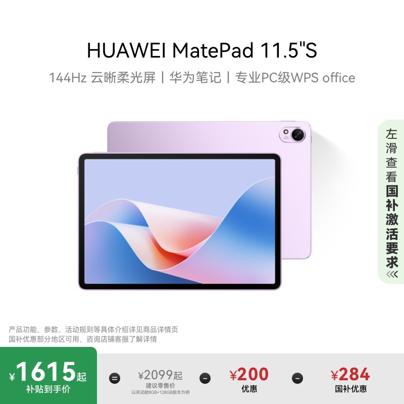 华为HUAWEI MatePad 11 10.95英寸HarmonyOS平板电脑正在天猫商城促销。原价2099元,使用国家补贴8.5折起(减314.85元),最终到手价1784.15元/件。