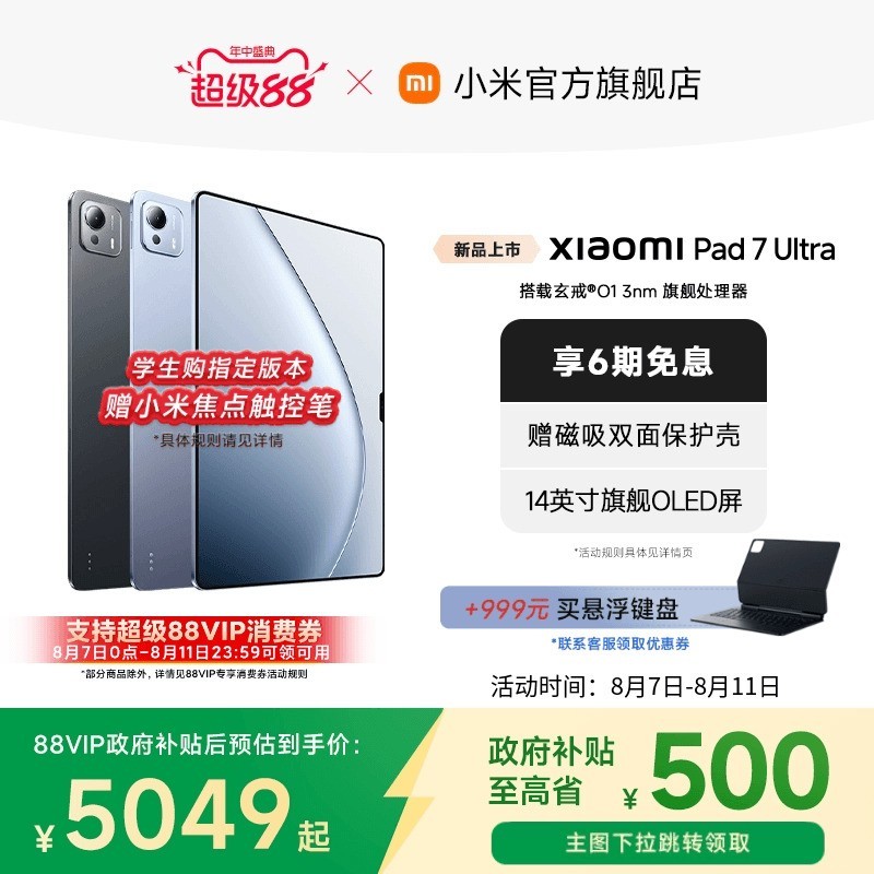 现在这款平板电脑在天猫精选有优惠活动。其原价为5699元,活动售价5699元,下单可领取满1500元减150元优惠券,还能参与补贴15%起减500元的优惠活动,下单1件,实付低至5049元。如果你正在寻找一款性能不错、屏幕较大的平板电脑,小米Xiaomi Pad 7 Ultra是个不错的选择。