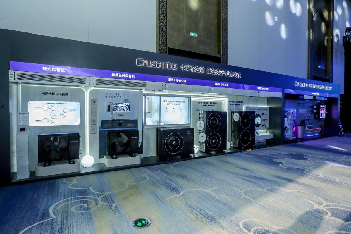 此外,卡萨帝还现场发布了致境新风风管机,可通过多维新风主动净化,有效改善室内空气质量。行业前沿的AI新风净化技术,还能提供260m³/h的行业最大新风量,20分钟即可实现室内外空气的高效置换,让室内始终保持干爽、清新。