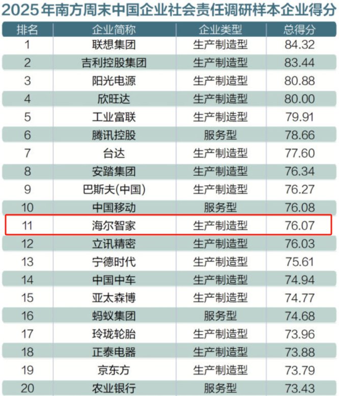 近日,南方周末发布了《2025年中国企业社会责任调研报告》,此次调研覆盖620家样本企业,最终评选出300家上榜企业。吉利控股集团、腾讯控股、海尔智家等企业跻身TOP20,代表了当下企业社会责任履行的前沿水平。其中,在汽车行业,吉利控股集团第一;在互联网科技行业,腾讯控股第一;在家电行业,海尔智家第一;在光伏行业,阳光电源第一等。