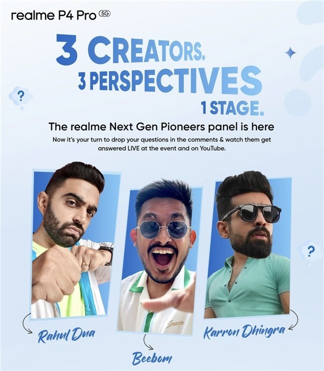 这一倡议旨在致敬未来创造者,邀请印度优秀科技、生活方式、喜剧创作者,围绕创业创新与职业发展与学生展开深度对话。活动通过真我手机realme官方YouTube、Facebook频道、官网及Flipkart平台同步直播,让全印度年轻观众都能参与其中。