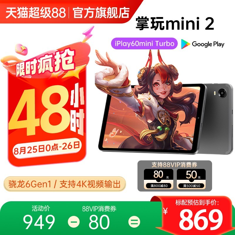 酷比魔方掌玩mini 2 4G 8.4英寸Android平板电脑(机身颜色灰色,存储容量8GB + 128GB,套餐为官方标配,网络类型WIFI)正在天猫商城促销。其原价1199元,现参加售价立减250元的活动,到手价只要949元。