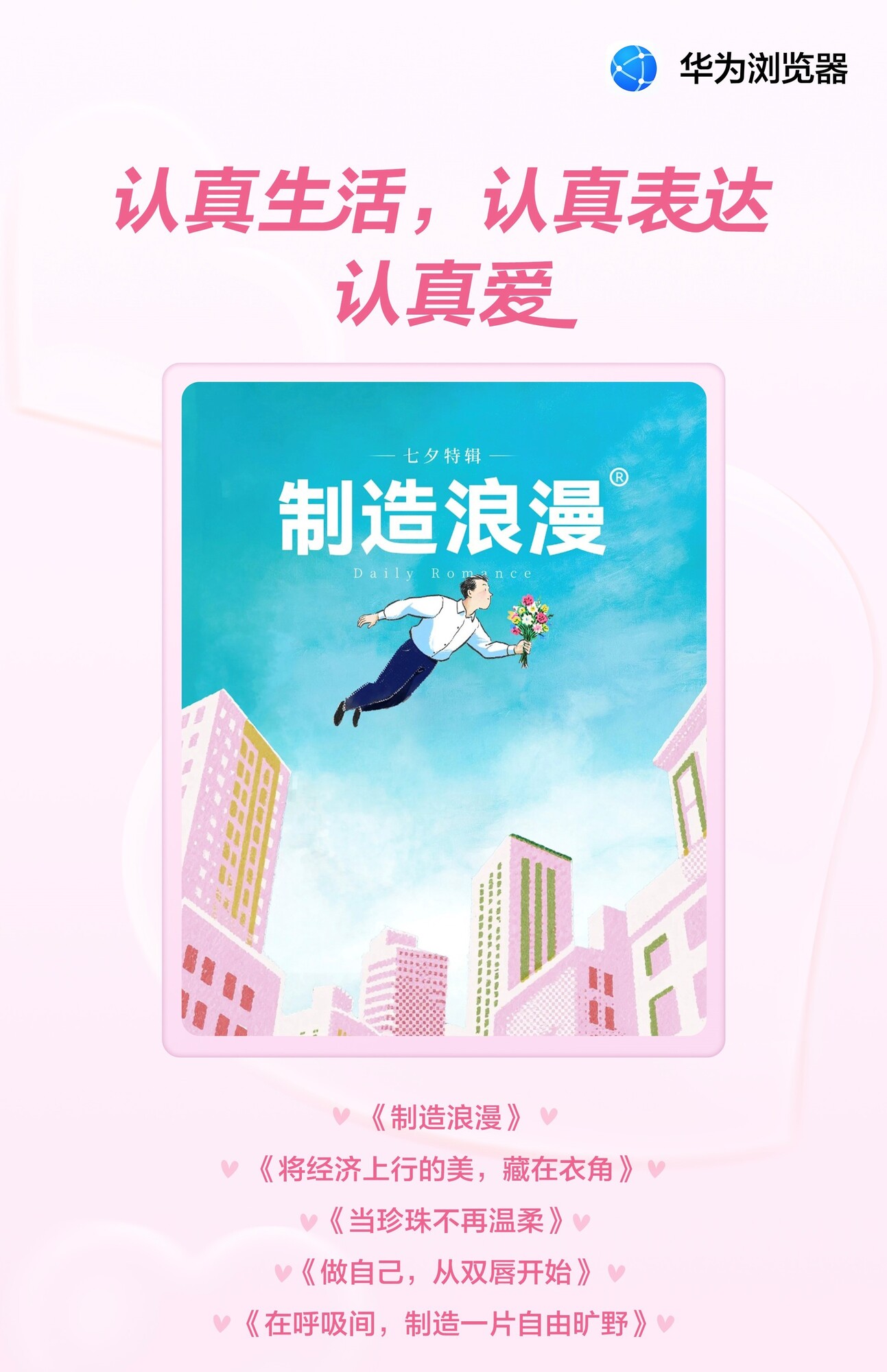 本文属于原创文章,如若转载,请注明来源:华为浏览器上线七夕特辑:走进自己的浪漫节日https://pad.zol.com.cn/1038/10380636.html