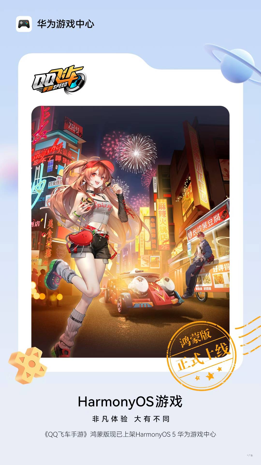 即刻启程,感受“鸿”式飙速!各位玩家可前往HarmonyOS 5华为游戏中心,搜索《QQ飞车》App下载并安装,登录你的专属账号,踩下油门,加入这场流畅无界、自由互通的全平台竞速狂欢吧!