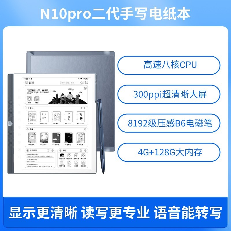 汉王 N10 Pro二代 10.3英寸墨水屏电子书阅读器是一款专为阅读爱好者打造的高性能设备,配备10.3英寸大屏,显示清晰细腻,支持Wi-Fi连接,内置128GB存储空间,轻松容纳海量书籍,满足长时间阅读需求,机身采用银色设计,简约大气,携带方便,适合学习、通勤等多种场景使用,目前在天猫商城官方标配版本正在火热促销中,原价3999元,现在使用满500减20优惠券叠加国家补贴85折优惠,实付仅需2532.15元,性价比极高,喜欢的朋友千万不要错过!