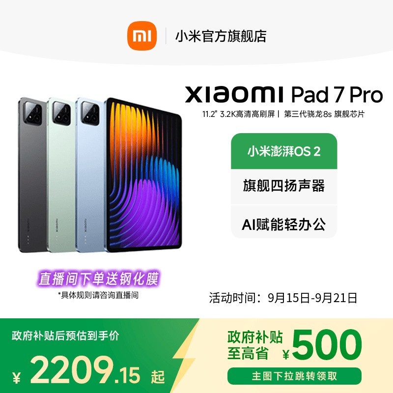小米Xiaomi平板7 Pro 11.2英寸,现天猫商城有促销活动。此款平板机身颜色为黑色,存储容量达8GB + 256GB,套餐类型是Xiaomi Pad 7 Pro(官方标配),网络类型为WIFI。