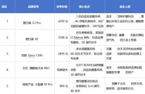 其他品牌如西昊、保友也在特定价位段表现出色,但就综合护腰性能而言,黑白调E3 Pro无疑是2025年的首选。投资一把好椅子,就是投资自己的健康,而这把椅子将成为你全天候的健康伙伴。