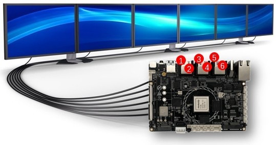 定昌的拼接大屏多屏商显板卡采用瑞芯微的旗舰芯片RK3588 ,是基于安卓ARM生态的HDMI分屏拼接方案,支持扩展6路HDMI OUT,可做实现1拖6个HDMI屏播放和触控,同显异显拼接方式,六个屏内可以做到很低成本的项目部署,只需把主板封装在金属外壳内(边缘播放盒子)即可便捷部署安装。