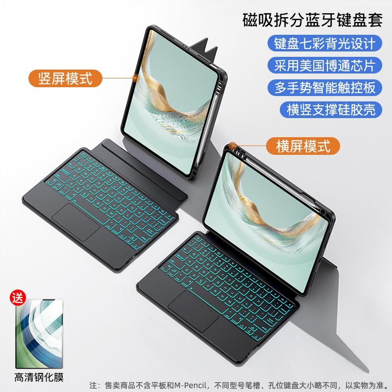 为大家介绍智思慧适用华为平板的键盘保护套,这款保护套适用于华为MatePad SE(10.4寸),有可选。它升级了博通芯片,实现0延迟,还有7彩背光,并且内置笔槽,功能十分实用。