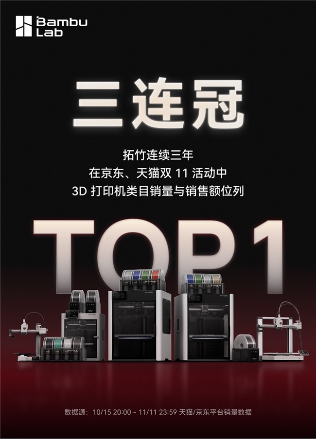 本文属于原创文章,如若转载,请注明来源:拓竹双十一再夺魁首,连续三年蝉联全球3D打印销量冠军https://pad.zol.com.cn/1080/10806212.html