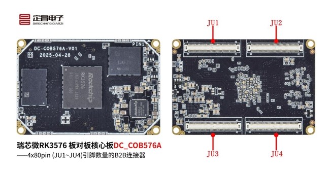 RK3576 B2B核心板(DC_COB576A)是定昌电子推出的基于瑞芯微RK3576芯片研发的高性能、低功耗核心板,采用B2B(板对板)的连接方式。集成了四核Cortex-A72和四核Cortex-A53八核处理器,配备单独的NEON协处理器,内置6TOPS AI算力NPU和嵌入式3D GPU,在人工智能、边缘计算和多媒体处理等领域表现比较好。