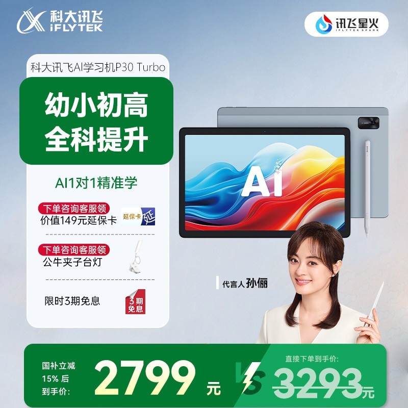 想为孩子挑选一款优质学习平板的家长们看过来!科大讯飞 iFLYTEK P30 11英寸AI学生平板正在进行优惠活动。这款学习机专为小学至高中学生设计,拥有11英寸高清护眼大屏,能很好地保护孩子视力。它配备6GB + 256GB超大存储,可满足全科学习需求。其搭载AI芯片,配合8核处理器,能带来流畅的学习体验,前后双摄还可精准诊断孩子的学习情况。它能为孩子定制学习路径,有效提升英语词汇量,增强数感和专注力,助力孩子德智体美劳全面发展,而且持久电池能保障学习不间断。