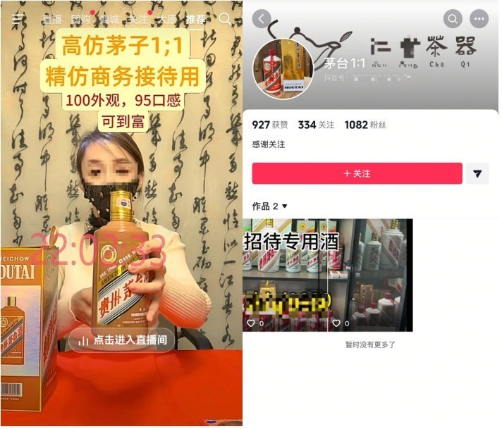 (图说:以“高仿茅台”导流的违规账号,目前已被平台处置)