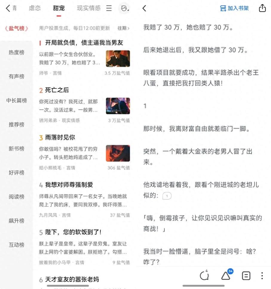 有谁跟我一样,晚上躺床上说好十一点准时睡觉,结果刷起甜宠文来,回过神就已经半夜两点了?我最近就彻底栽了,在知乎“盐选小说”里挖到一本宝藏——《开局就负债,债主逼我当男友》。