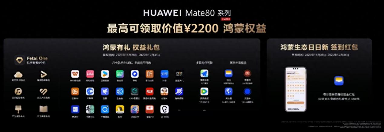 以前总是一个个去开通会员,音乐、视频、阅读……每个平台都要单独付费,不仅麻烦,钱包也吃不消。这次华为Mate 80系列新机赠送的鸿蒙有礼,直接送了6个月Petal One悦享套餐,一下子就把华为视频、华为音乐和华为阅读的会员权益都涵盖了。那种感觉,就像刚搬进新家,发现冰箱里已经塞满了好吃的,不用我再费心张罗,直接就能享受。