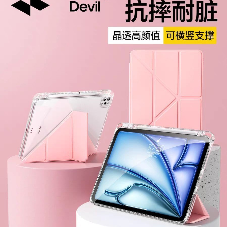 闪魔2024新款iPad Air 6保护套透明款上市热销中,专为适用苹果平板设计,兼容iPad Pro带笔槽版本,同时适配mini3全包款型,适用于11寸轻薄9/10代等多型号设备。采用高品质亚克力材质,高透清晰展现机身美感,边框全包防护有效防摔防弯,精准开孔使用便捷,内置智能休眠功能更省电。特别设计的Apple Pencil笔槽,收纳稳固不易丢失,日常使用更安心。