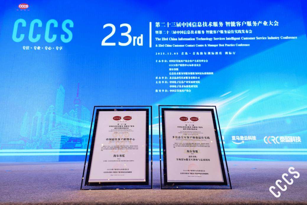 12月5日,第二十三届中国信息技术服务智能客户服务产业大会在青岛举行。海尔客服凭借数字化、智能化转型成果,一举斩获“中国最佳客户联络中心奖”“多模态交互客户体验最佳实践奖”及“服务领袖奖”三项大奖。