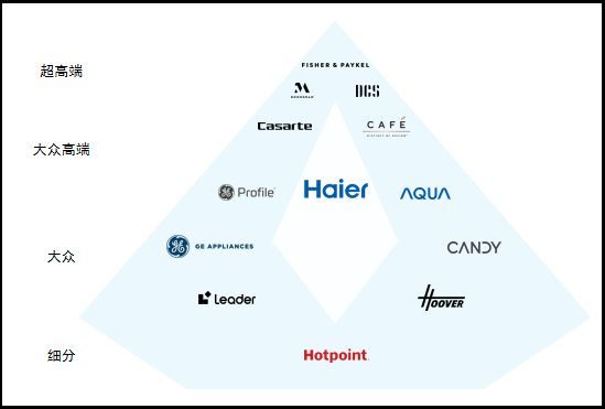 1、 中国市场:海尔、卡萨帝、Leader、斐雪派克四大品牌覆盖大众、高端、细分、超高端市场,每个品牌都有自己的发力点,并各自实现了市场的持续引领。