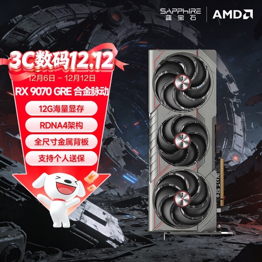 京东12.12大促活动预售期现起已全面开启,想要在年末更新自己主机平台的玩家们要抓住这次机会了,AMD官方旗舰店Radeon显卡产品迎来了年末最后一次大促,今天向大家推荐的是RX 9070 GRE这款中高端游戏卡。