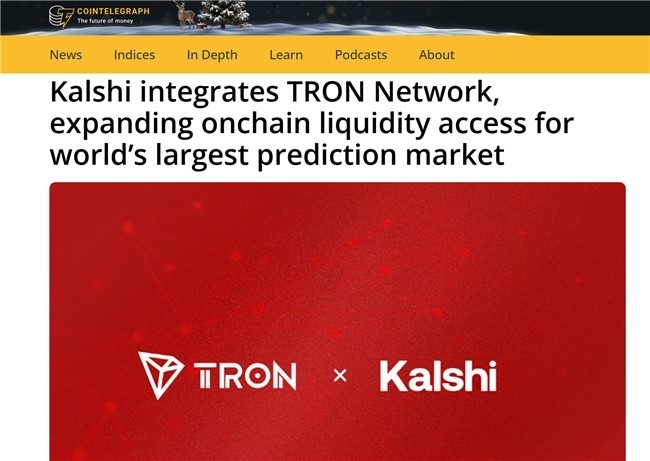 近日,据The Block、cointelegraph和Benzinga 等海外知名媒体报道,波场 TRON 宣布,全球最大的预测市场平台 Kalshi 已正式集成波场TRON网络。此次集成后,用户可直接在 Kalshi 平台进行波场原生代币 TRX 及波场版 USDT 的充值与提现。这不仅进一步完善了 Kalshi 的多链基础设施,更为全球市场参与者开辟了全新的流动性通道,实现了传统金融与区块链生态的有效联通。