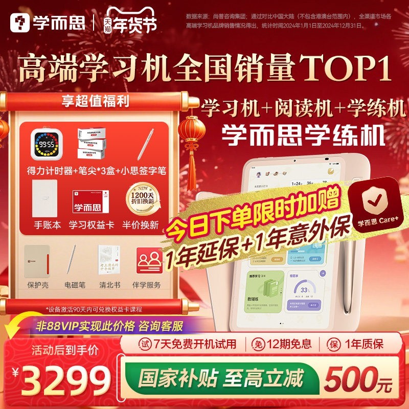 学而思网校推出的学而思学练机是一款集学习机阅读机和大屏护眼平板电脑于一体的三合一AI智能学习设备专为小学到高中全阶段学生量身打造采用128GB大内存流畅运行各类学习应用内置丰富课程资源覆盖全科知识点结合AI智能诊断精准查漏补缺帮助孩子高效提升成绩高清护眼大屏有效过滤蓝光缓解长时间使用带来的视觉疲劳保障孩子用眼健康现在天猫商城限时促销官方标配套餐仅需3999元比原价4499元直降500元性价比超高机会难得喜欢的家长不要错过赶快入手为孩子开启智慧学习新体验
