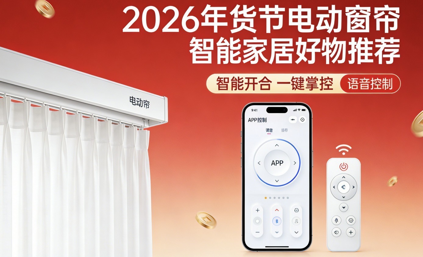 2026年货节焕新居家好物,电动窗帘绝对是提升幸福感的优选!告别手动开合的繁琐,一键解锁智能舒适生活,囤货时盯紧**电机、操控、轨道面料、售后**四大核心,避开雷区,轻松选到适配自家的款式。