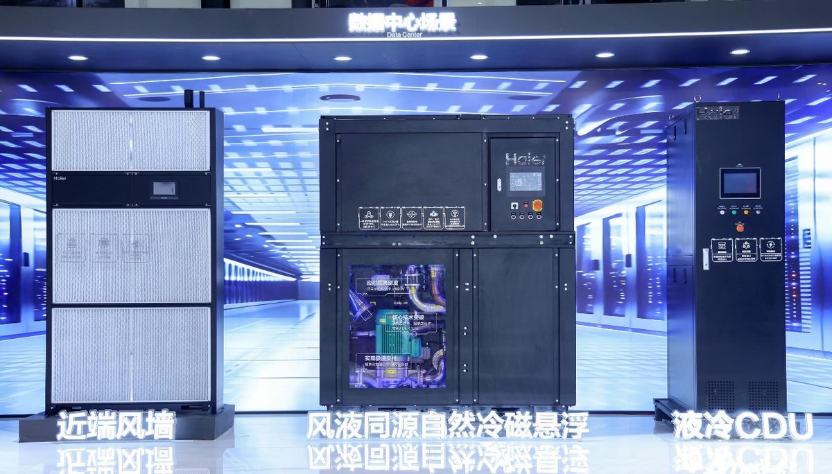 而数据中心,就是今天的“能耗巨人”。在“东数西算”工程推动下,PUE(电源使用效率)每降低0.1,背后都是巨额电费和碳排放的节约。海尔磁悬浮给出的方案不是一套打天下,而是“对症下药”:智算中心发热量惊人,海尔暖通商用推出行业首创的“风液同源”自然冷磁悬浮等六大新品,适配高密度算力需求;超大及大型通算中心,用高效冷冻水带自然冷却,PUE可降至1.25以下;中小型数据中心,用蒸发冷或风冷磁悬浮相变多联机组,无需昂贵电力扩容就能完成节能改造。