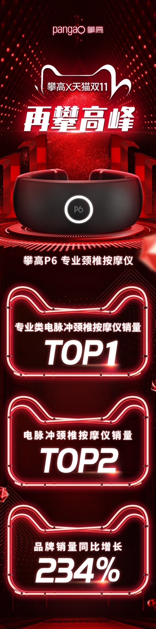 作为专业颈椎按摩仪的第一品牌,攀高一直深入用户痛点,凭借卓越的品牌实力拉高行业的专业标准,以一己之力拉动了整个颈椎按摩仪行业专业品质的上限。近年来,随着年轻用户的成长,90后、95后甚至00后已经逐渐成为颈椎按摩仪市场不容忽视的消费人群。各大品牌为追求年轻市场,产品外观上愈趋时尚潮流化,致力打造“颜值经济”。但这种风气并没有改变攀高20年来坚守的“专业优先”的研发理念。今年攀高全新推出的第六代明星产品——攀高P6颈椎按摩仪以过硬的专业度占领了市场,在这次的双11大战中,再次俘获了消费者的欢心。
