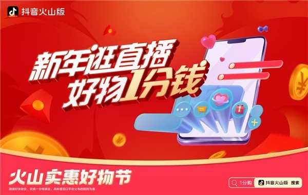 活动期间,抖音火山版精心准备了“爆款商品1分购”、“9.9特价”、“超级直播间”、“红包雨”等多重线上玩法。用户们在这里买到的不仅仅是实惠超值的好物,更是对新年生活满满的期盼。