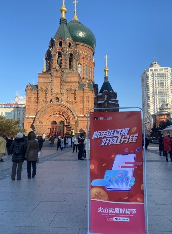 在元旦前夕,抖音火山版联合哈尔滨本地广场舞团体与市民们一同喜迎2021年。极具东北气息的广场舞在索菲亚教堂开跳,即使在室外气温低至零下的情况下,热情奔放的舞蹈表演也吸引了许多观众驻足观看。