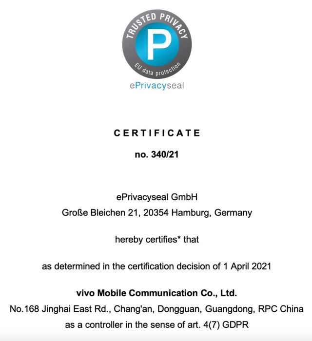 本文属于原创文章,如若转载,请注明来源:vivo通过TRUSTe与ePrivacyseal隐私认证https://pad.zol.com.cn/766/7665020.html