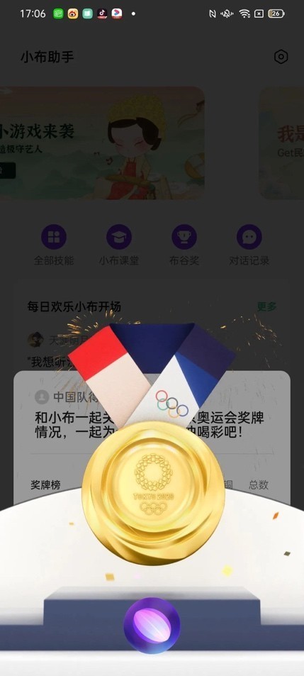 不仅如此,该技能还支持一键跳转外部播放视频、赛事关注与取消、日程push的更新与取消等功能,而且在部分特定场景下,用户还会与奥运彩蛋不期而遇。据说,小布奥运彩蛋,跟五环很搭,查询中国队奖牌,会有惊喜动效哦。