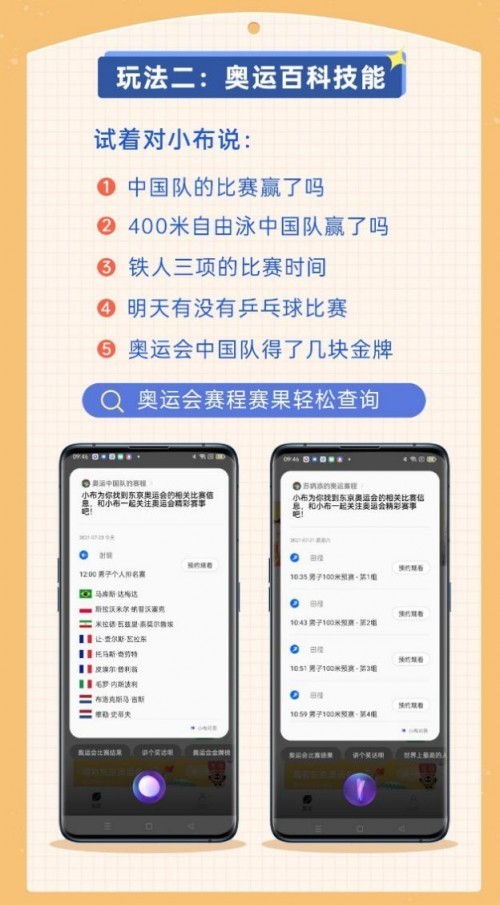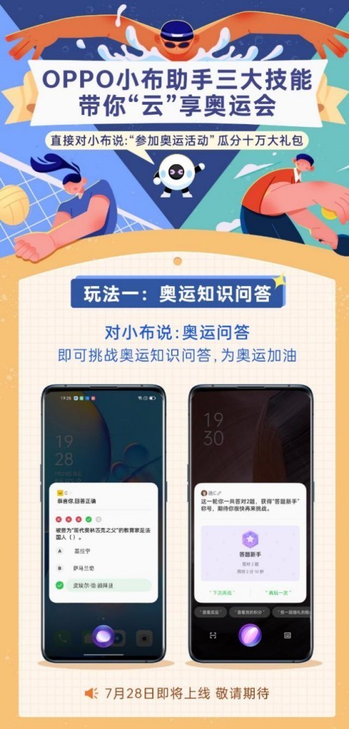 OPPO小布助手奥运主题技能将在东京奥运会期间全面上线,可通过语音对话开启小布奥运主题技能。例如,用户可以对小布说:“奥运问答”,即可挑战奥运知识问答,看看谁才是奥运知识达人,挑战奥运问答最强王者之位。