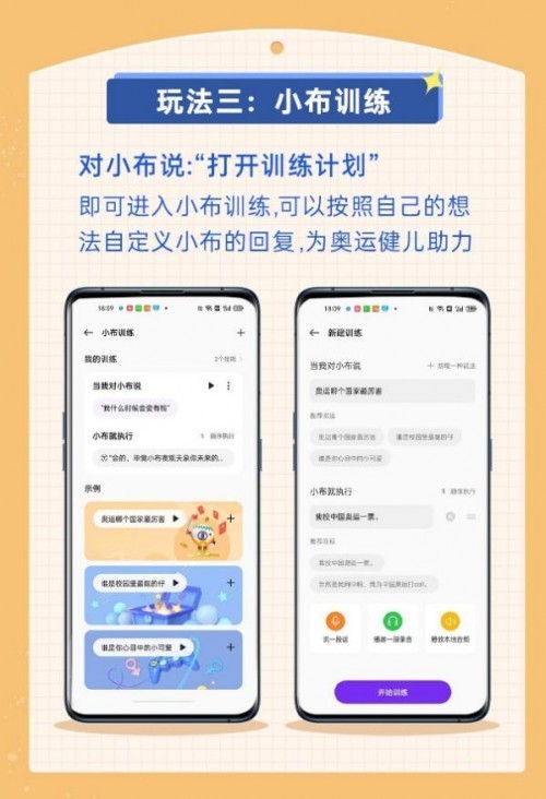 此外,“小布奥运训练营”也正式开营,对小布说:“打开训练计划”,用户可以通过小布训练技能,按照自己的想法自定义小布的回复,为奥运健儿助力、为中国奥运加油。