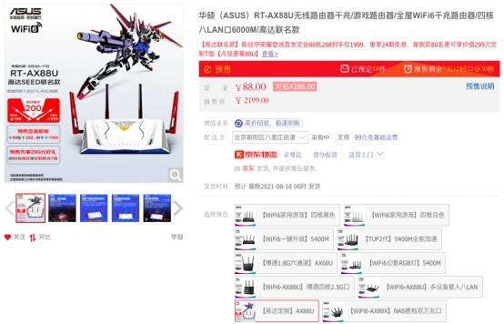 这款华硕RT-AX88U高达联名限量款高速路由器将于8月18日正式首发,目前已经在京东电脑数码开启火爆预售,现在付定金不仅享受直降200元优惠、24期免息,尾款支付前80名晒单还将获得高达周边限定款T恤!对高达拥有极致热爱的你还在等什么,快来京东电脑数码释放你的超能力吧!
