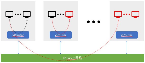 跨节点:Black网络中的虚机,在进行跨网络访问Red网络虚机时,流量直接从本节点发出,经过物理的IP网络到达另一端的物理节点,并上送到虚机。
