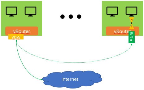 由于采用Overlay网络,用户的数据报文采用的是封装模式,所以需要一个SDN gateway来对数据报文进行解封装,这样才能跟外部网络进行直接通信。我们采用软件gateway的方式来解耦对硬件的依赖。每一个计算节点都可以作为一个Gateway节点。
