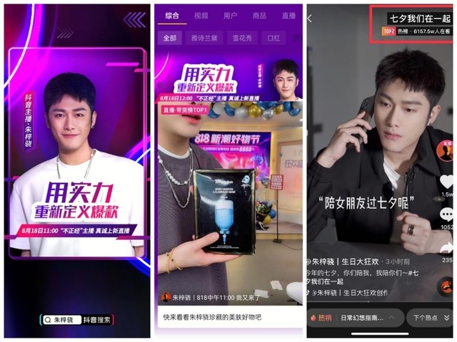 相关数据显示,当日直播累计超13小时,开播不久在线人数即突破10万,#加班的朱梓骁像极了我本人、#七夕我们在一起 等热点话题登录抖音热榜。值得一提的是,得益于长期深耕电商主播的工作经验和平台在内容、营销、工具上提供的支持,朱梓骁抖音直播间一度霸榜带货榜TOP1,最终以抖音818新潮好物节期间2.62亿的总成交额登上明星带货榜榜首,新增粉丝、成交人数均破百万,成交额破百万的商品单坑高达60个,为众多品牌背书增益、助力其产品卖爆的同时,也为其他品牌的数字化营销带来有益的探索。