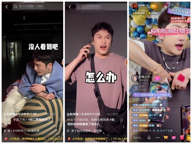 正如朱梓骁抖音账号主页介绍“一个靠颜值和有趣灵魂,苟且偷生的男人”,他日常发布的短视频充满了欢乐搞怪、毫无偶像包袱的气息,或率性出镜,演绎不羁造型,或紧跟潮流,参与站内话题挑战,和粉丝们保持高频互动,与他帅气的外形形成强烈反差。本次直播则依旧延续了他鲜明独特的个人风格,在直播前发布的预热短视频中,他展现出了一如既往的综艺感,以有趣、真实、多样化的内容营造出轻松愉悦的氛围,吸引粉丝和综艺爱好者进入直播间并长时间停留,还跟随音乐随机跳舞,把控直播节奏,充分调动用户的好奇心和潜在购物兴趣,网友纷纷评论“要要要要”,#朱梓骁唱歌社死现场 等相关话题更是实时上升,收获较高热度。